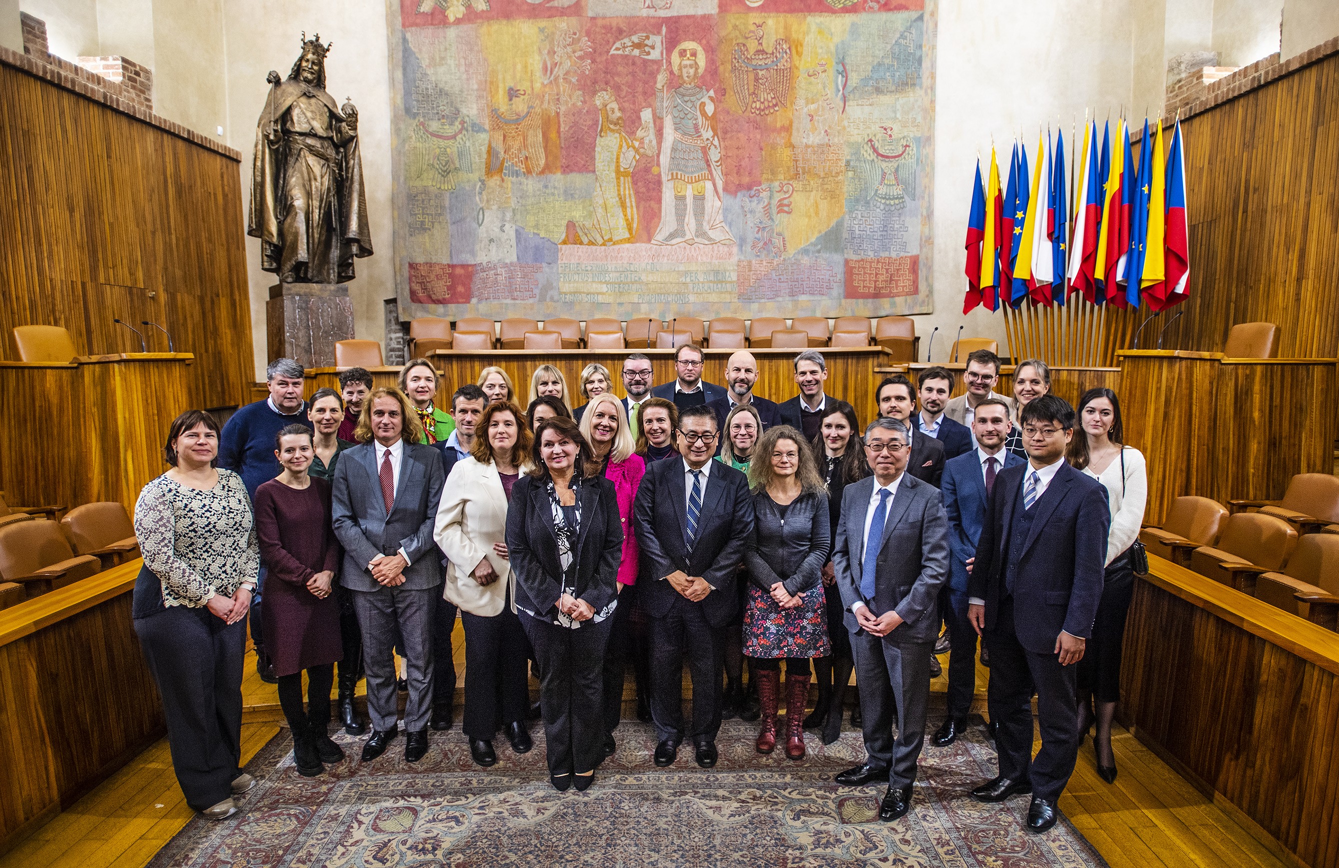 中欧チェコの首都プラハ旧市街にあるカレル大学で1月13日、東京財団が運営するヤングリーダー奨学基金プログラム(Sylff)30周年記念式典が開かれ、ミレナ・クラリーチコヴァ学長、長岡寛介駐チェコ日本大使ら約50人が参加して盛大に行われました。