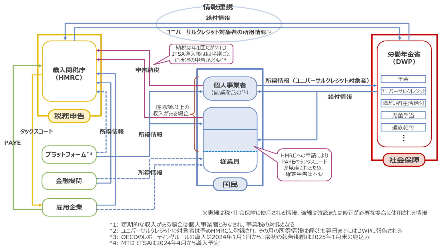 雇用主は歳入関税庁に毎月の給与額、税額、社会保険料等の報告が義務付けられ、受給者の情報は毎日自動的に雇用年金省に転送される。自営業者など給与所得者以外の受給者は、自らの所得情報の変動を毎月雇用年金省に報告することで給付に反映される。自らの所得を報告することが受給につながるというメカニズムが働くよう設計されているのである。コロナ禍でジョンソン政権はこの制度を活用して困窮者に迅速に給付を行ない、制度に対する国民の信頼度が向上した。