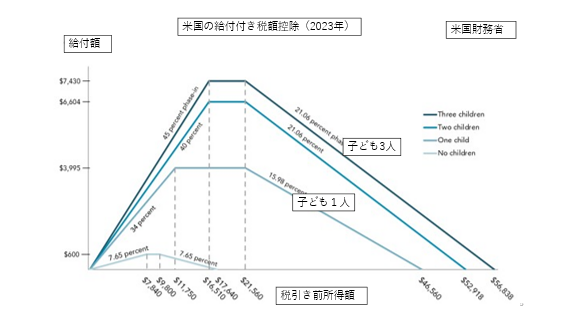 第1に、行政の効率化による小さな政府、つまり、複雑になっている社会福祉制度を一本化し効率的で規模の小さい政府をつくること、第2に、働くほど給付と合わせた手取りが増えるという仕組みによって勤労意欲を促進すること、第3に税制と社会保障制度を一本化して、市場原理を発揮させることだ。その後、州レベルでの導入という実証実験を経て導入されたのがEITCであるが、その目的は、社会保障税負担の引上げに伴う負担増の軽減と就労の促進とされ、子どもをもつ低所得層が主たる対象とされた。