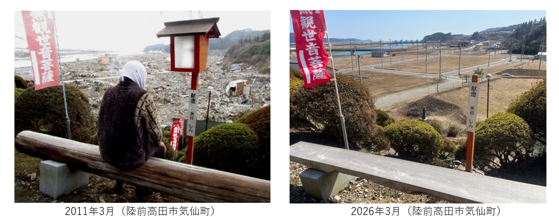 岩手県陸前高田市の高台から、眼下に広がる町を見渡す。15年前、東日本大震災の直後に現地入りし、番組の中継や取材の拠点としていた場所である。震災後、何度もこの場所を訪れてきたが、今回は報道人としてではなく、一個人としてここに立っている。