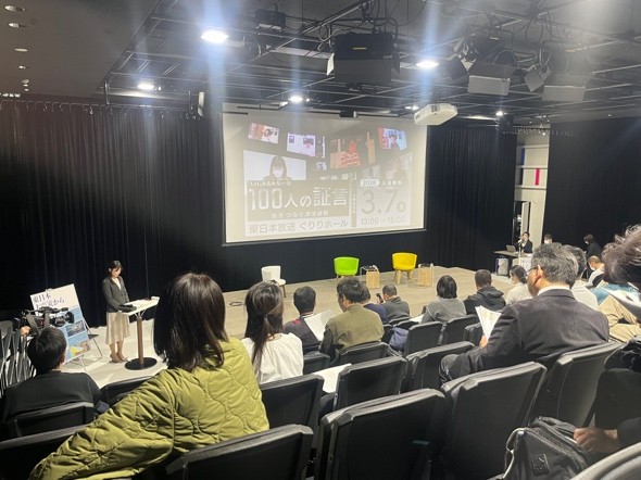 この作品は、東日本大震災で被災した石巻市南浜・門脇地区の住民100人の証言をもとに、当日の避難行動をCGで再現し、津波避難の教訓を検証したドキュメンタリーである。上映会では作品上映のほか、出演者や制作者による講演、パネルディスカッションが行われ、震災から15年を前に避難行動の教訓を改めて検証する機会となっていた。